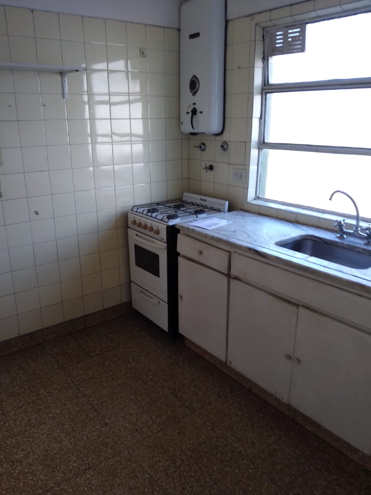 Cocina 3,5 x 3 pisos ceramico equipada con muebles altos y bajos