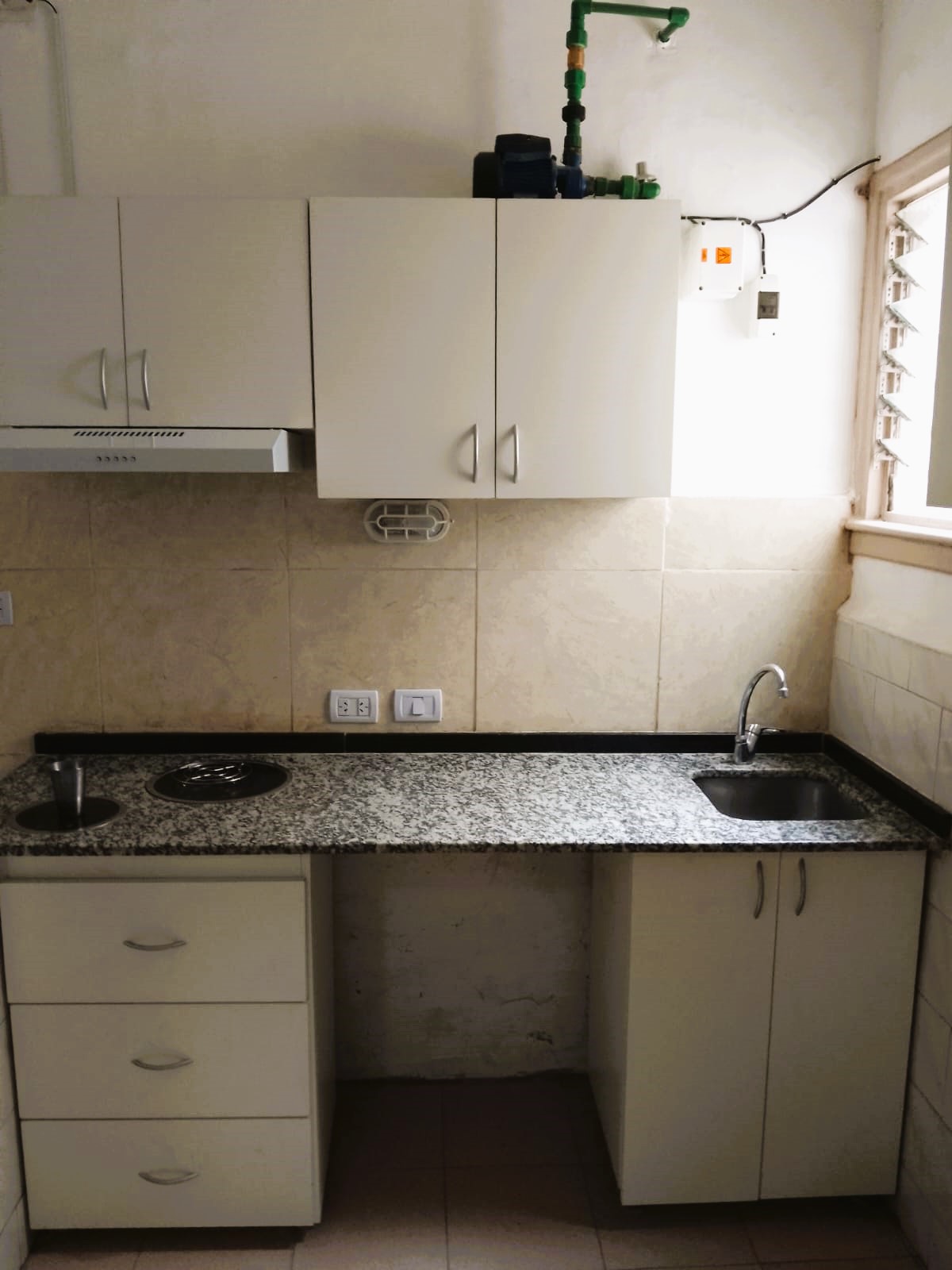 Cocina 3x3 pisos cerámicos con lavadero incorporado a cocina (todo nueva) equipada, cocina eléctrica (no tiene horno), agua caliente x termotanque eléctrico.