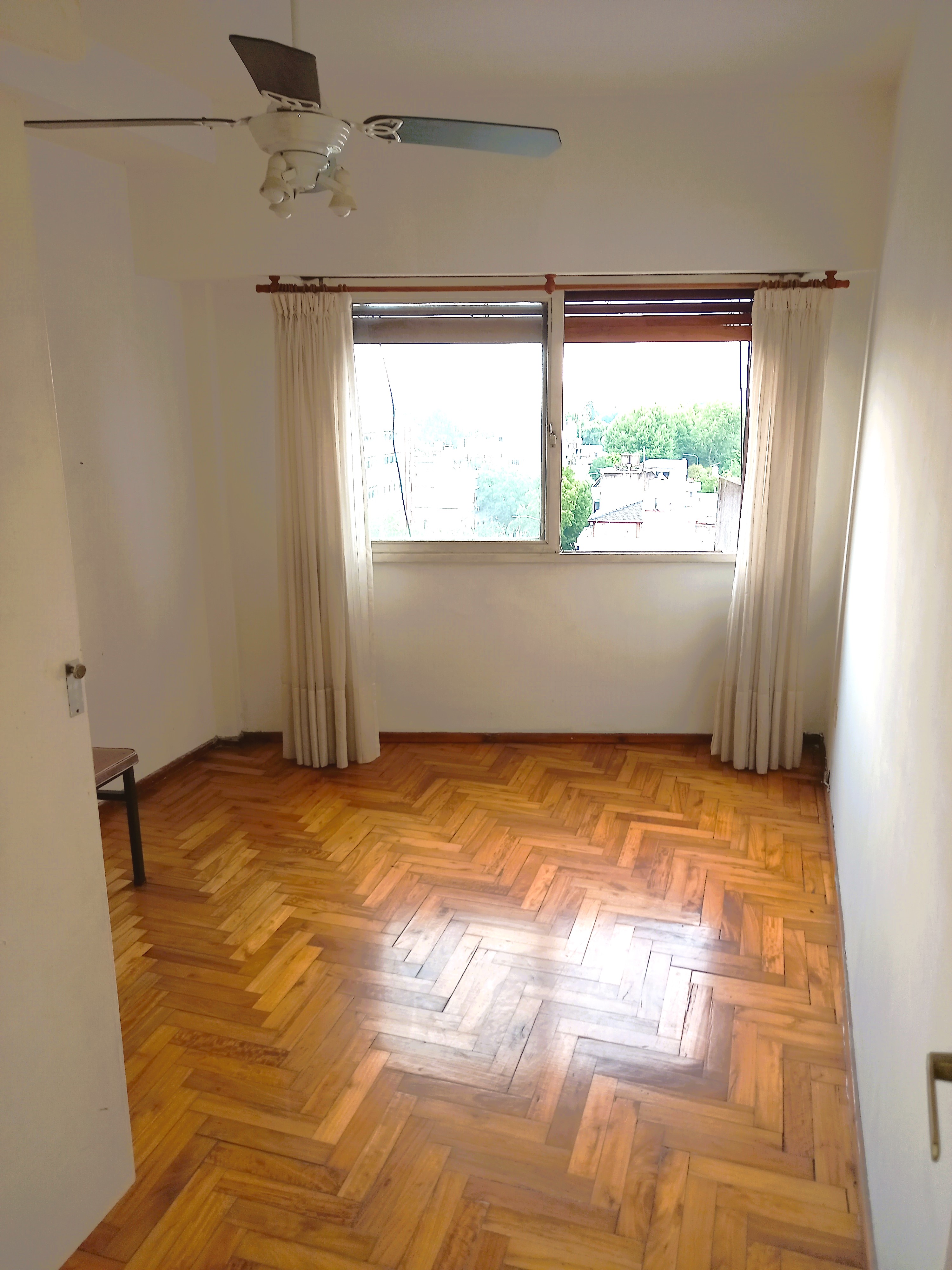 Dormitorio 4x3 pisos parquet con placard con ventilador de techo