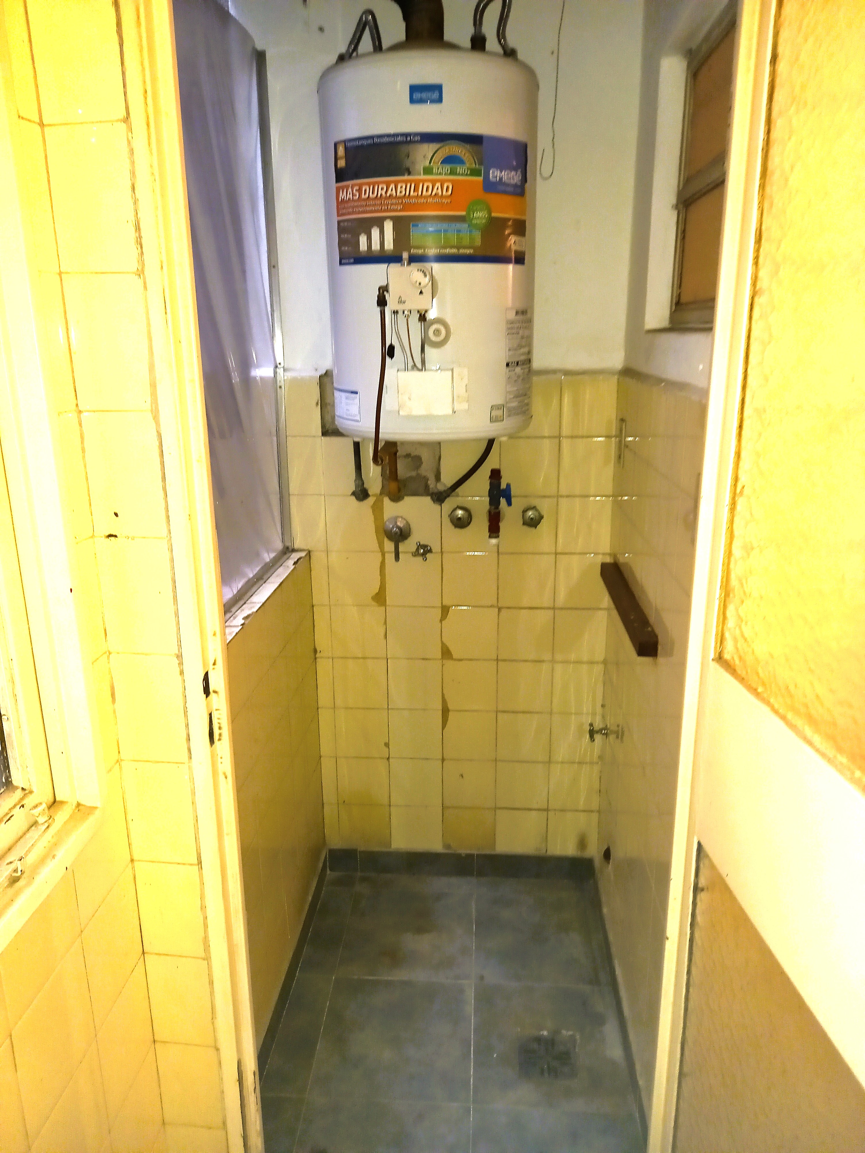 Lavadero 1,5x2 pisos cerámicos con termotanque, baño completo con ducha